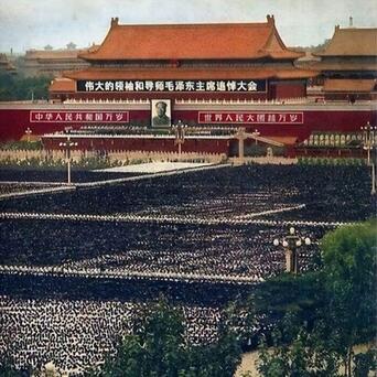 9月18日上午北京天安门广场,数十万人浩浩荡荡地聚集到这里参加毛主席的追悼仪式,人山人海,都热泪盈眶,场面肃穆感人。
