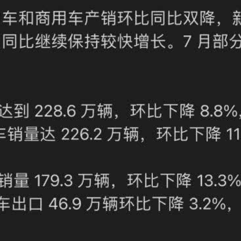 7月,国内汽车销量179万辆,环比下降 13.3%。